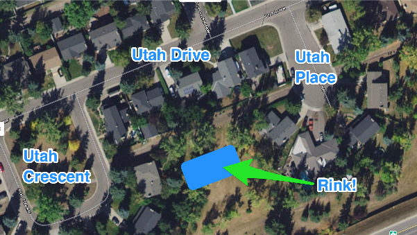 Where Is It? Rink is located in the green space behind the alley that connects Utah Cres and Utah Place NW. See the map below